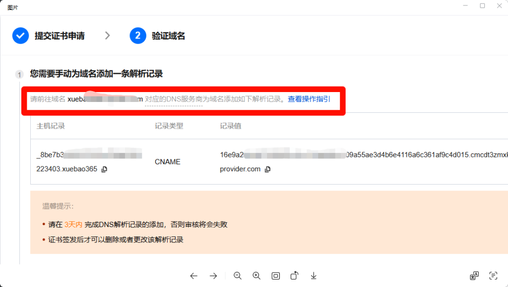 然后对ssl进行验证,这个验证是腾讯云需要确认你是该域名的主人