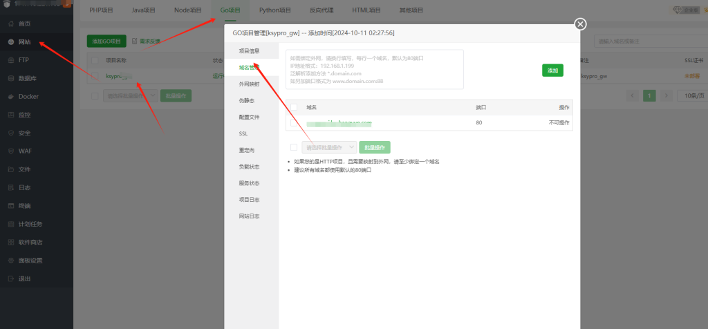 为什么智卡云刚搭建出来前台提示站点未开通?先把域名解析到对应服务器,然后打开宝塔面板绑定