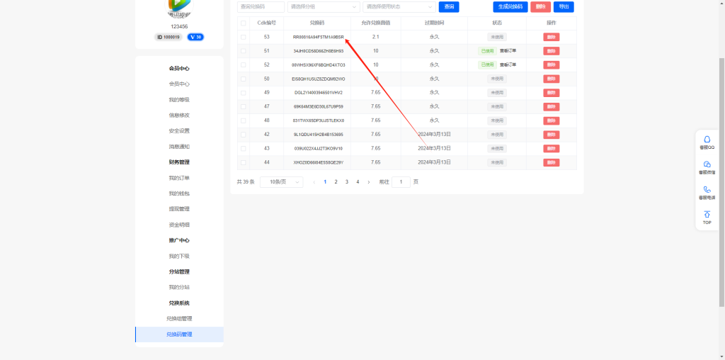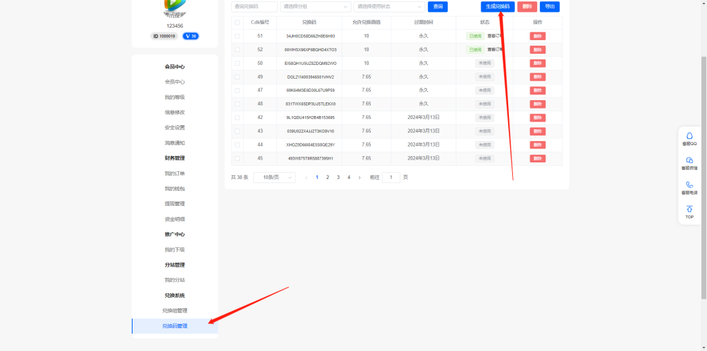 我们创建完分组进入兑换码创建兑换码