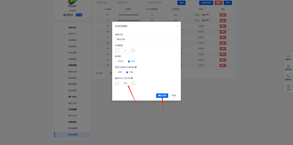 这个兑换后,会扣除兑换码生成者的余额(也就是他这个商品的拿货价)