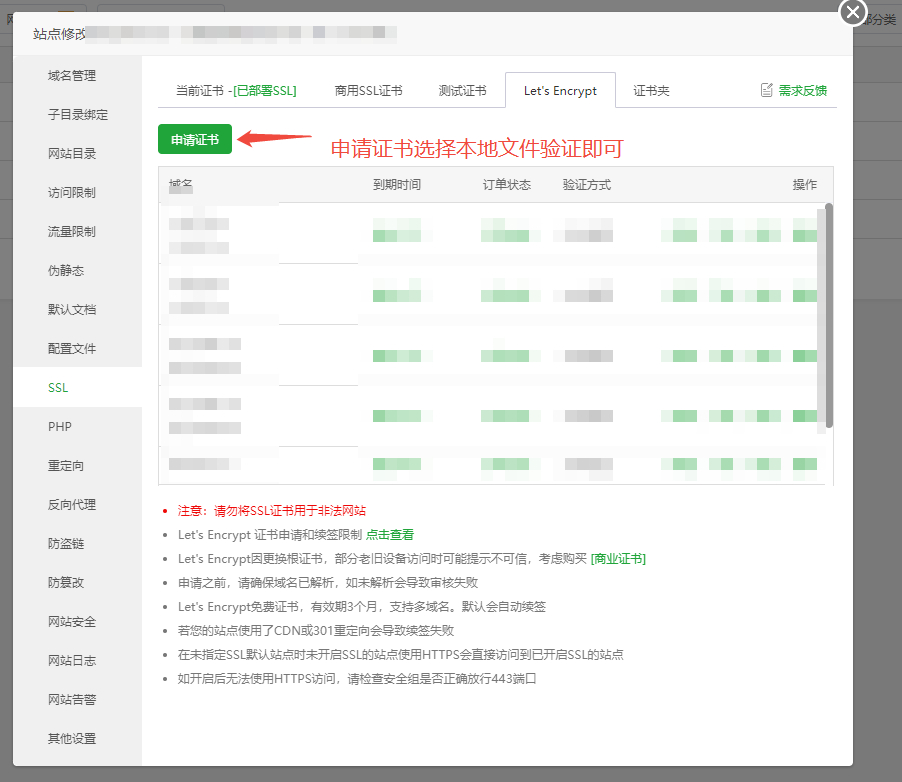 4、给这个域名申请SSL证书,选择本地文件验证即可