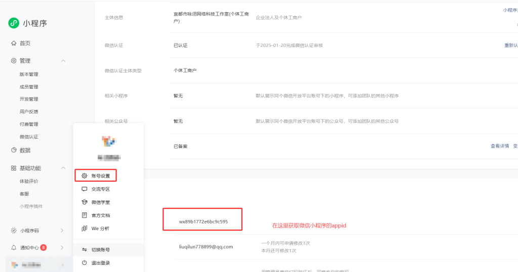 我们登录微信公众平台https://mp.weixin.qq.com/获取appid和appsecret 然后...