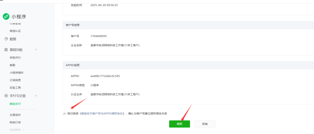 小程序要收款,也就是用户购票的钱要实时到你的账户